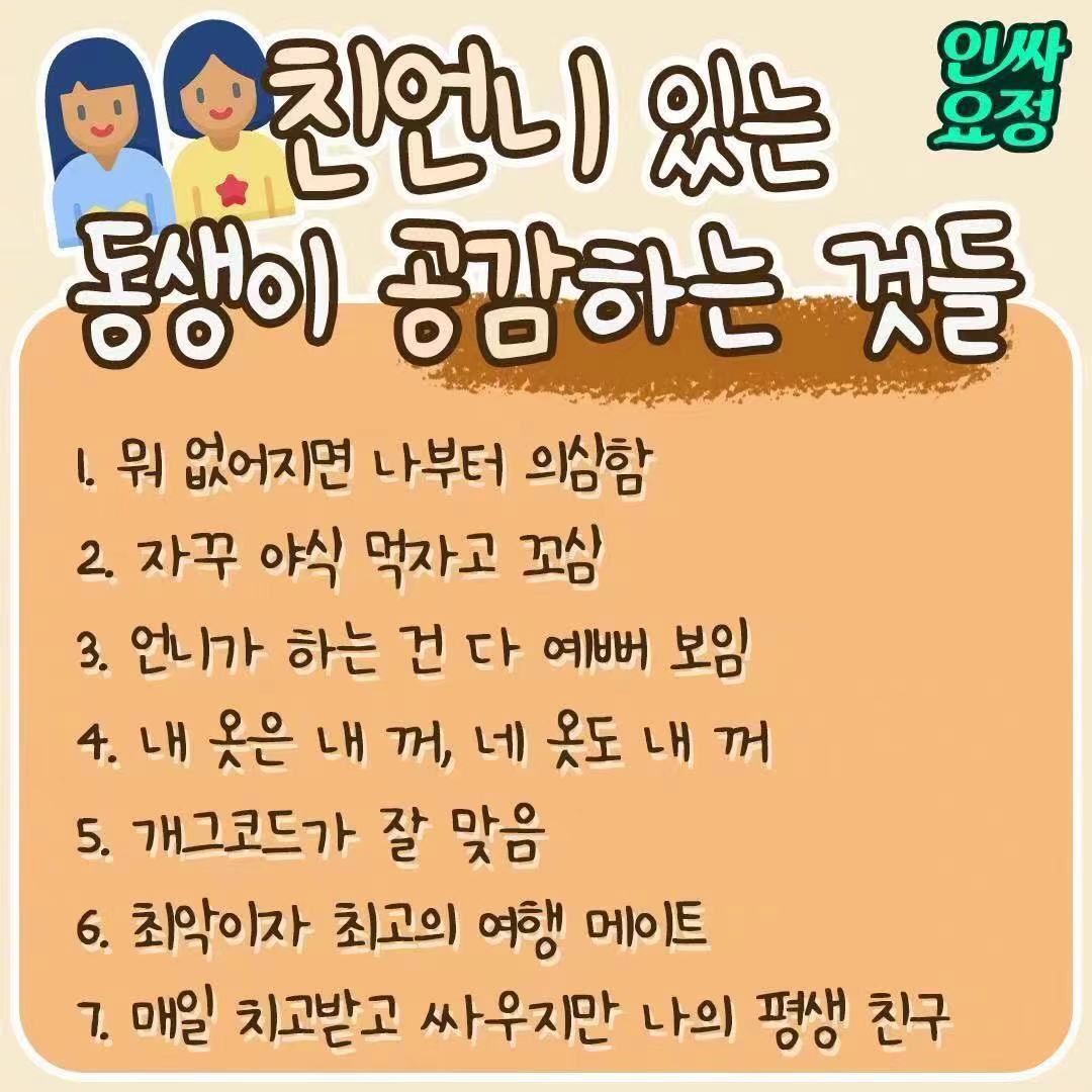 有亲姐姐的人们会同感的事情‍,是这样滴吗?1️·少了什么的话,就先怀疑我2️·总是勾引我吃夜宵3️·姐姐做的事情看起来都好️4·我