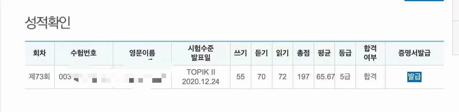 恭喜外言社税老师班课李同学在本次Topik考试中顺利通过5级!欧阳老师一对一余同学顺利通过5级!范老师一对一许同学顺利通过5级!石老师班课