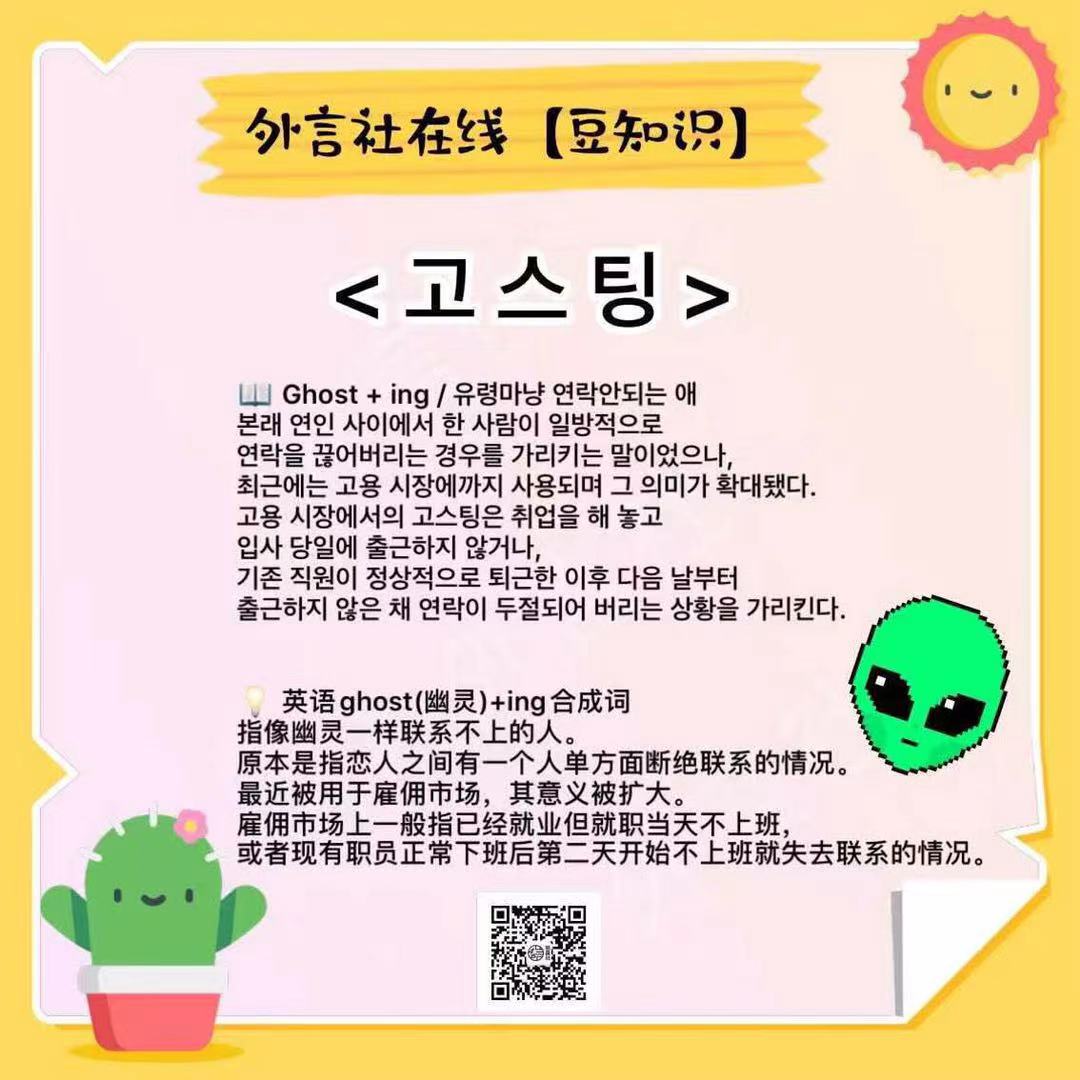 你有遇到过这样的人吗?明明之前还有联系,但给TA发消息也不回,打电话也不接整个人就像幽灵一样联系不上了这样的人在韩语中被称为「고스팅」