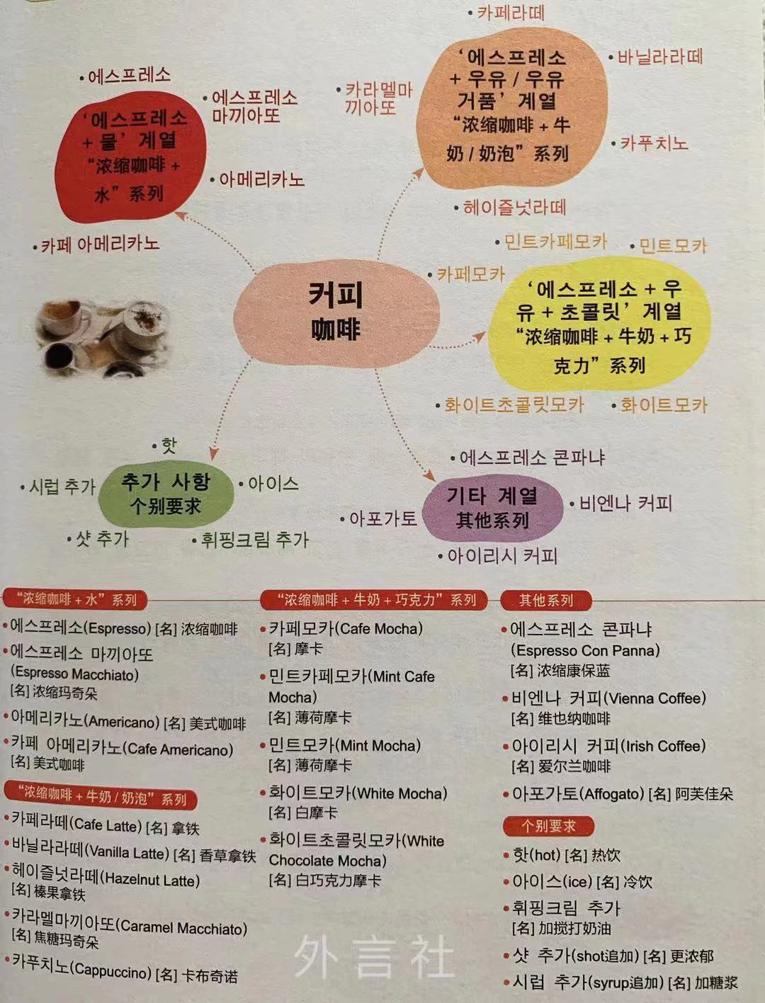咖啡类韩语单词