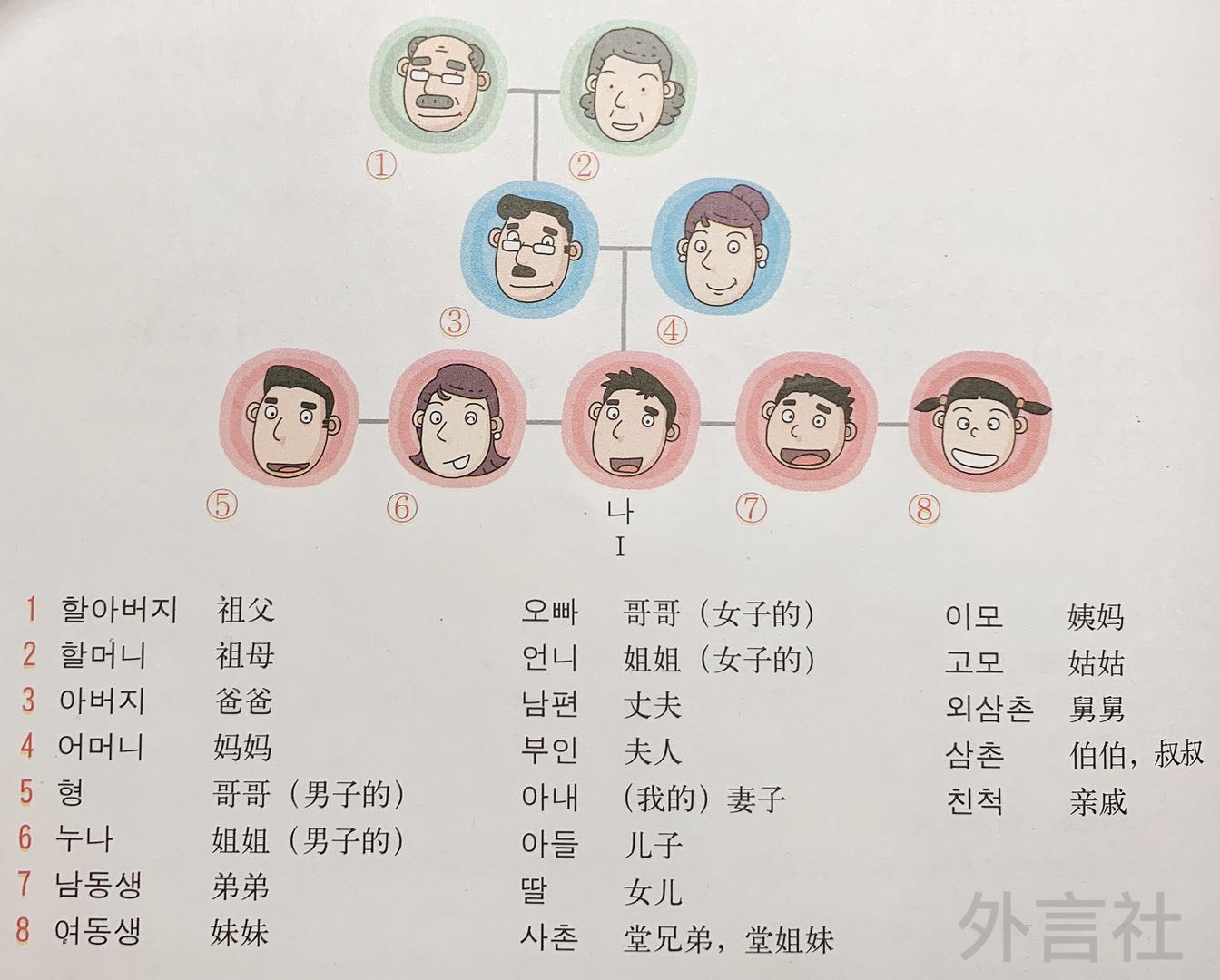 韩国家庭关系称呼表