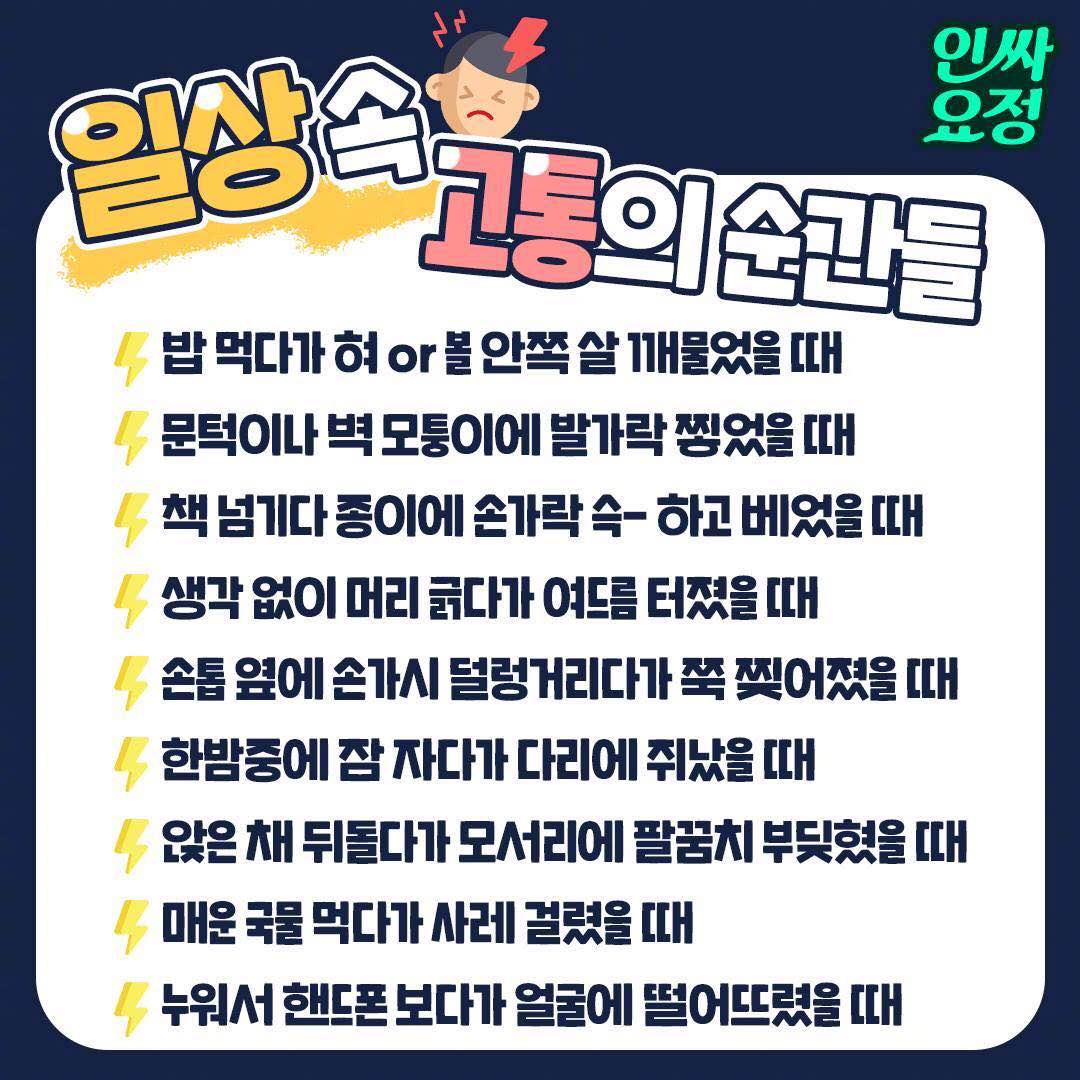 日常生活中痛苦的瞬间~画面感要溢出屏幕了!!!1️·吃饭的时候咬到舌头或腮2️·脚趾撞在门或墙边3️·翻书的时候被书页划到手️4·不在意地